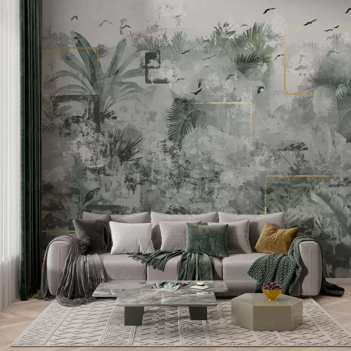 murales de pared Silueta de selva tropical de estilo grunge w01917