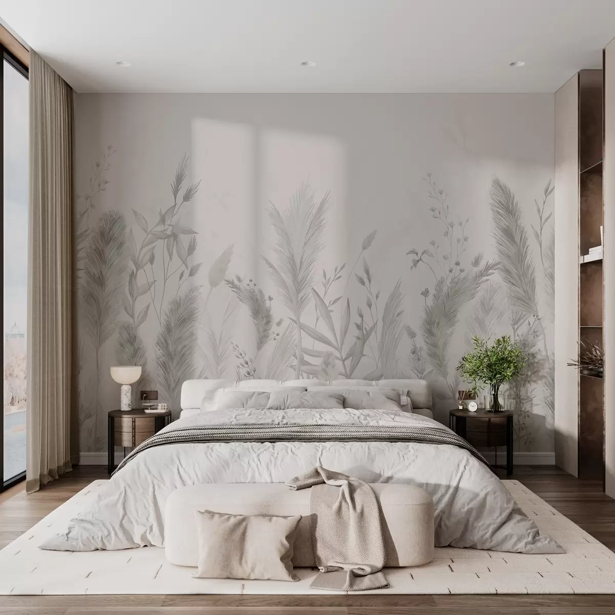 Papel tapiz Hierbas altas y flores de colores neutros Nr. w02004