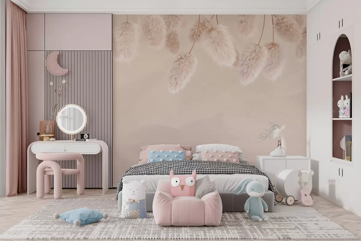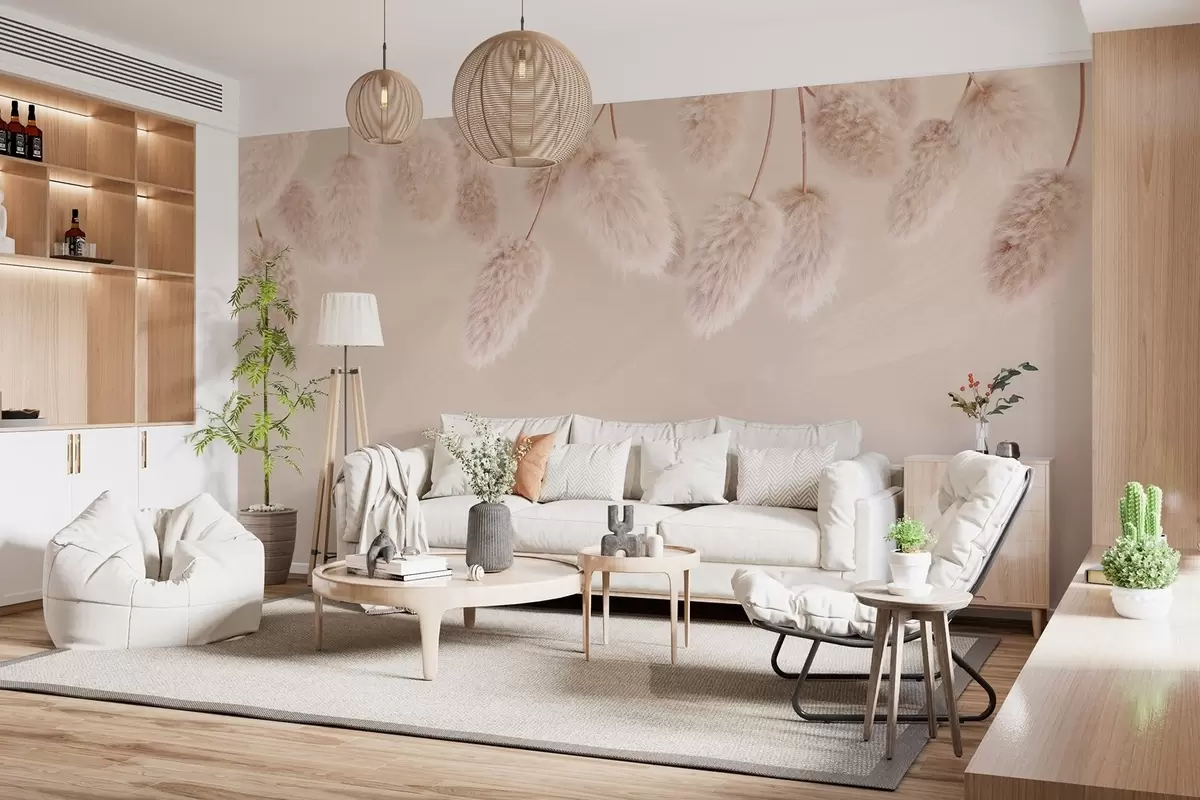 Papel tapiz Suaves nubes de lagurus sobre un fondo de suaves pinceladas rosas Nr. w02071