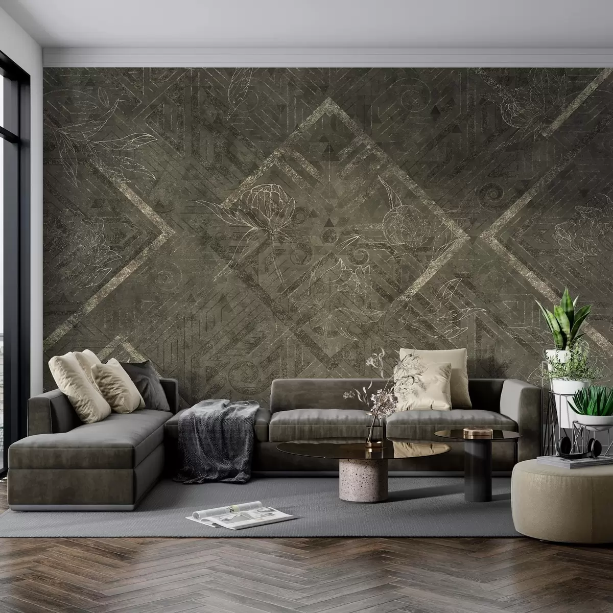 Papel tapiz Textura grunge con motivos florales en color amarillo Nr. w02079
