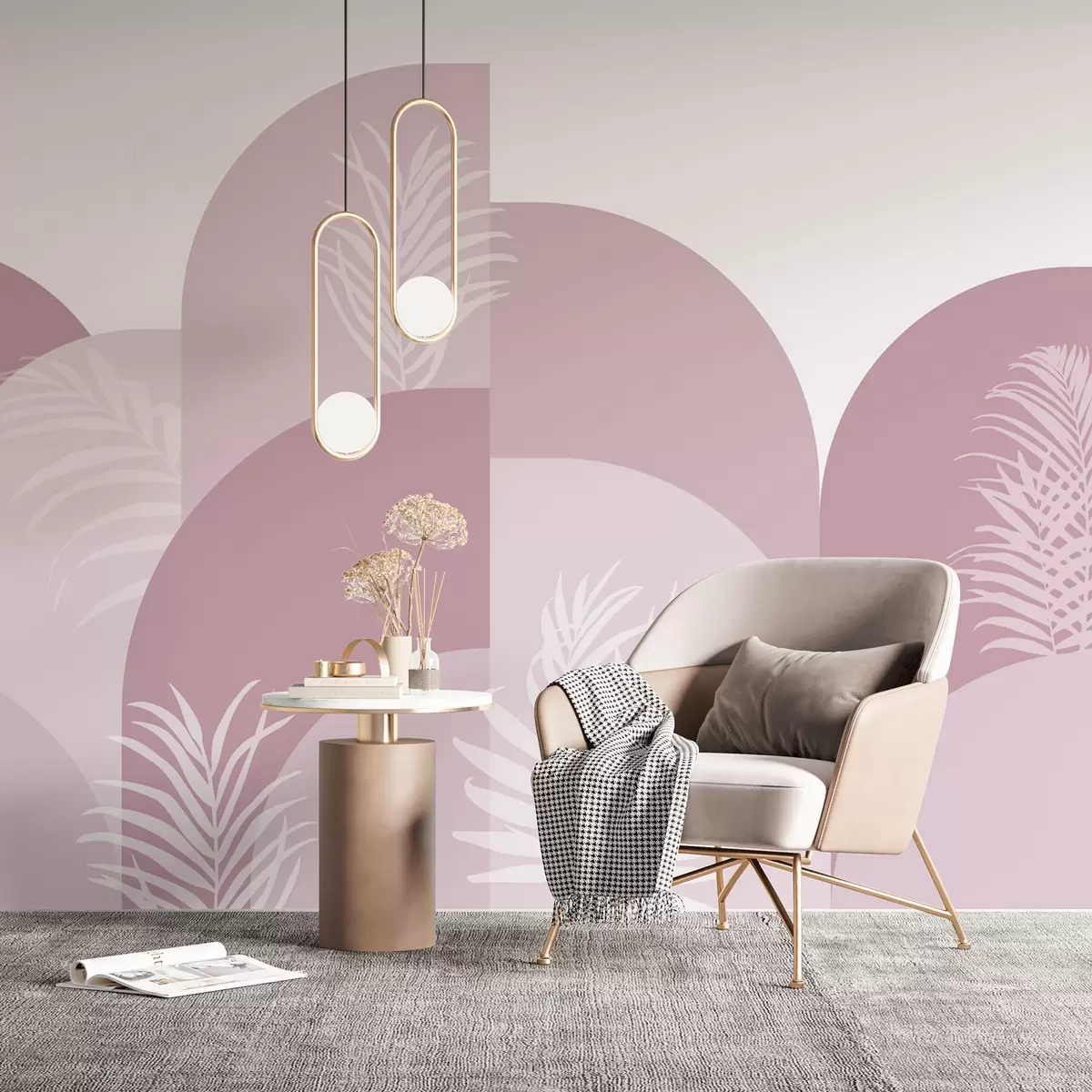 Papel tapiz Arcos de moda con hojas tropicales color rosa Nr. w02101v4