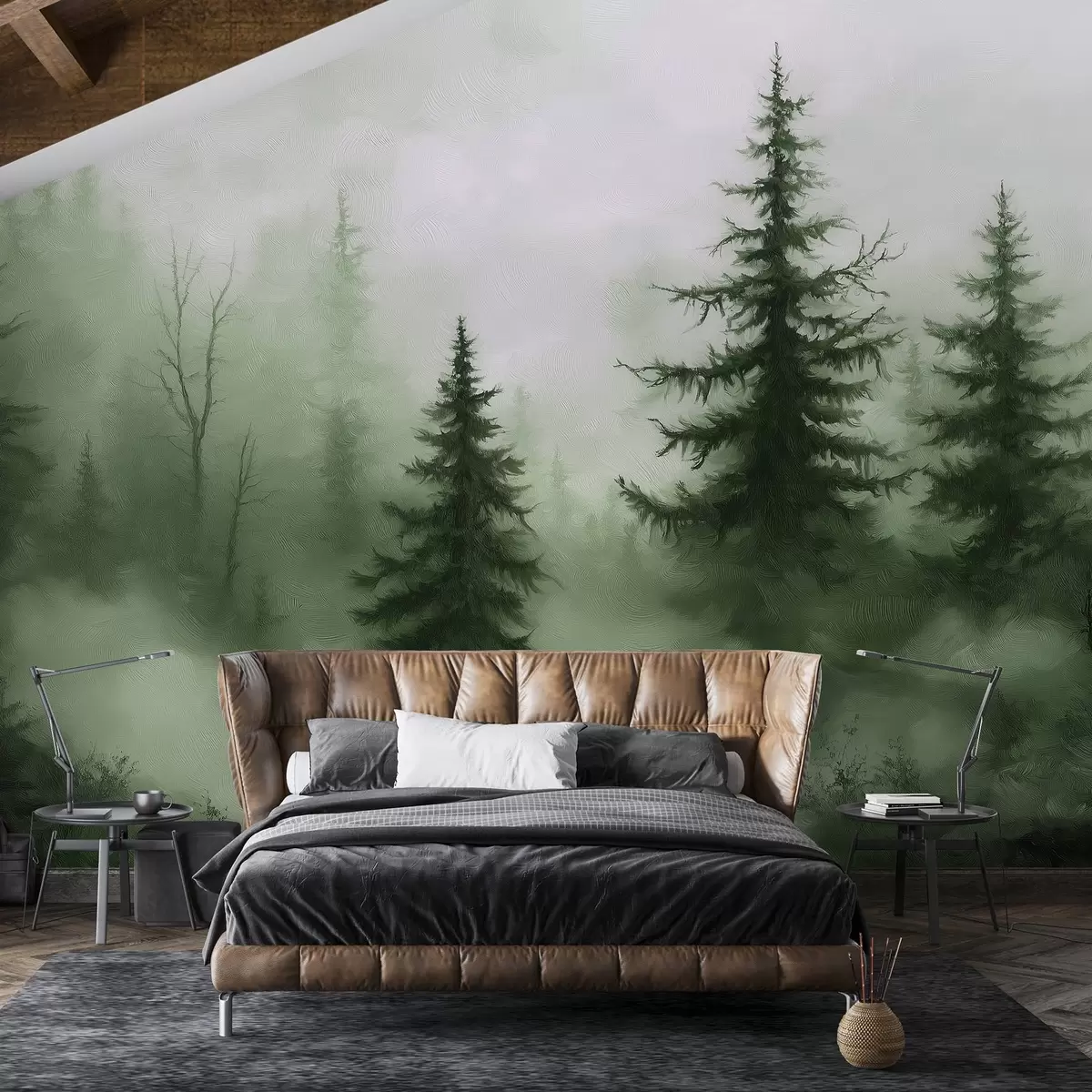 Papel tapiz Bosque verde oscuro, pintura al óleo, pinceladas, naturaleza Nr. w02153v1