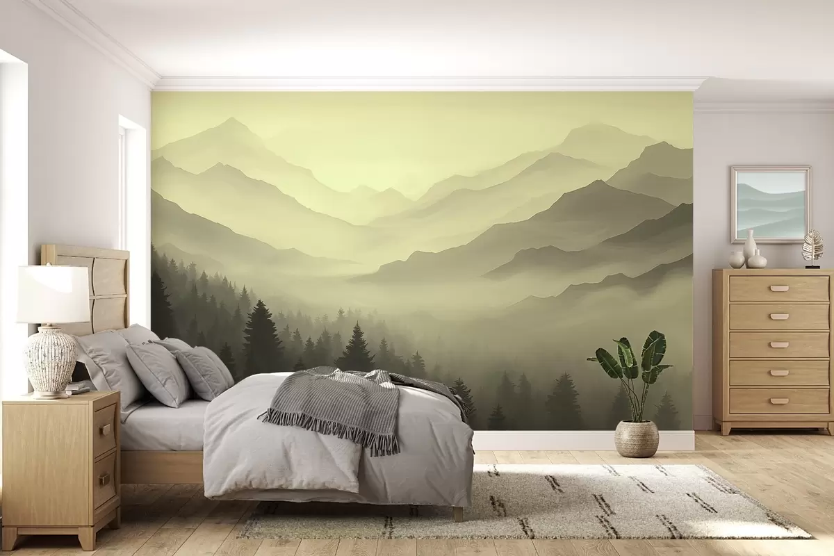 Papel tapiz Bosques y montañas en tonos verdes Nr. w02186v1