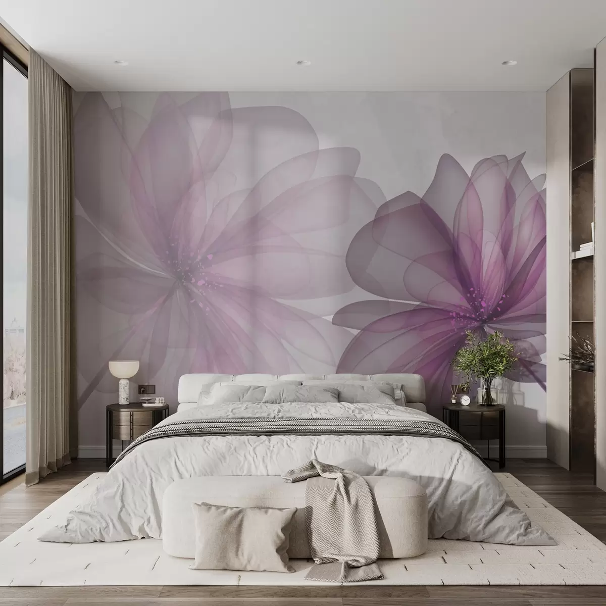 Papel tapiz grandes flores rosas translúcidas Nr. w02205