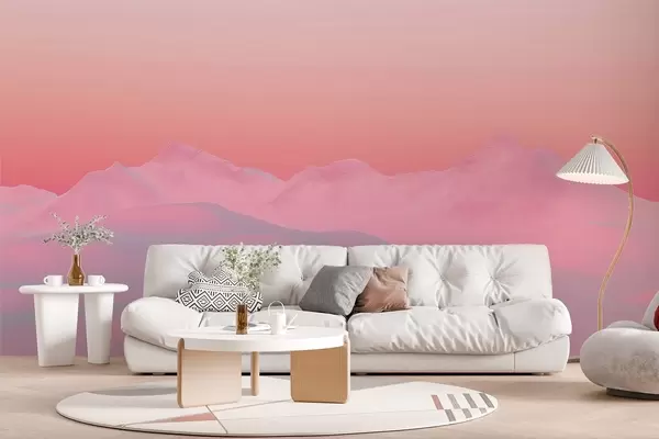 Papel tapiz Suave puesta de sol frambuesa con las montañas y el cielo como telón de fondo Nr. w02234