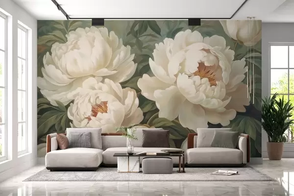 Papel tapiz Delicadas peonías en colores pastel Nr. w02252