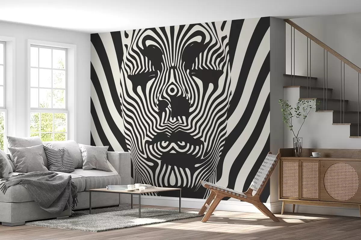 Papel tapiz Op art estilo enrejado con la cara abstracta, líneas onduladas sobre fondo de color claro. Nr. w02285