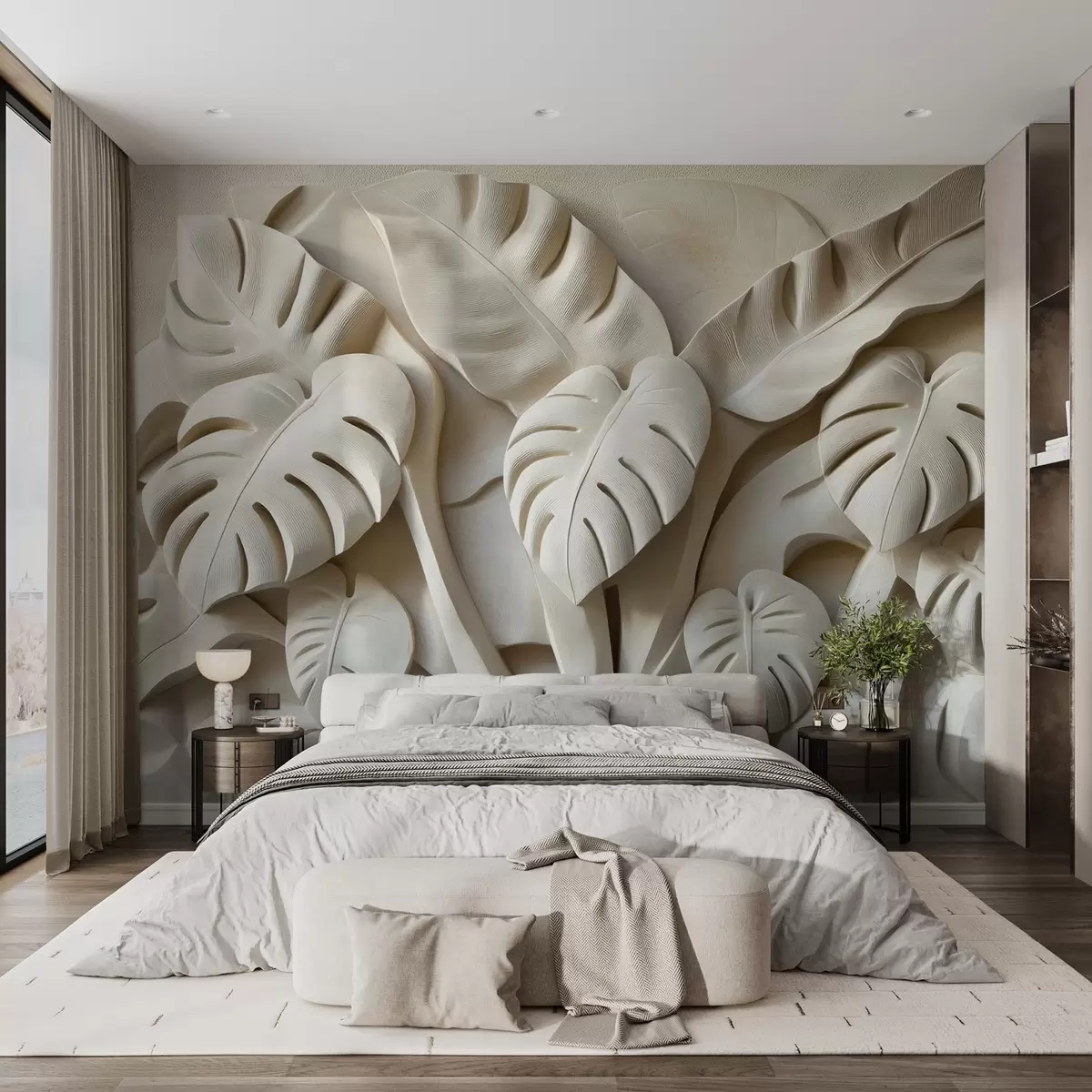 Papel tapiz Bajorrelieve de grandes hojas de monstera Nr. w02312