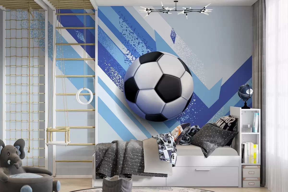 Papel tapiz balón de fútbol sobre fondo abstracto dinámico en colores azules Nr. w02347