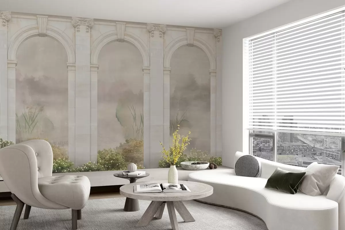 murales de pared Arcos de luz con arbustos y flores w02371v1