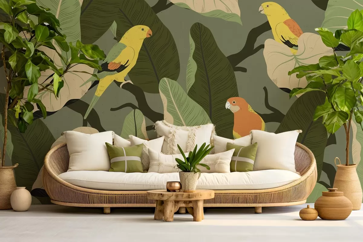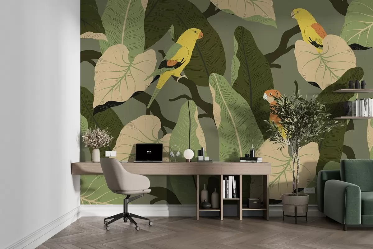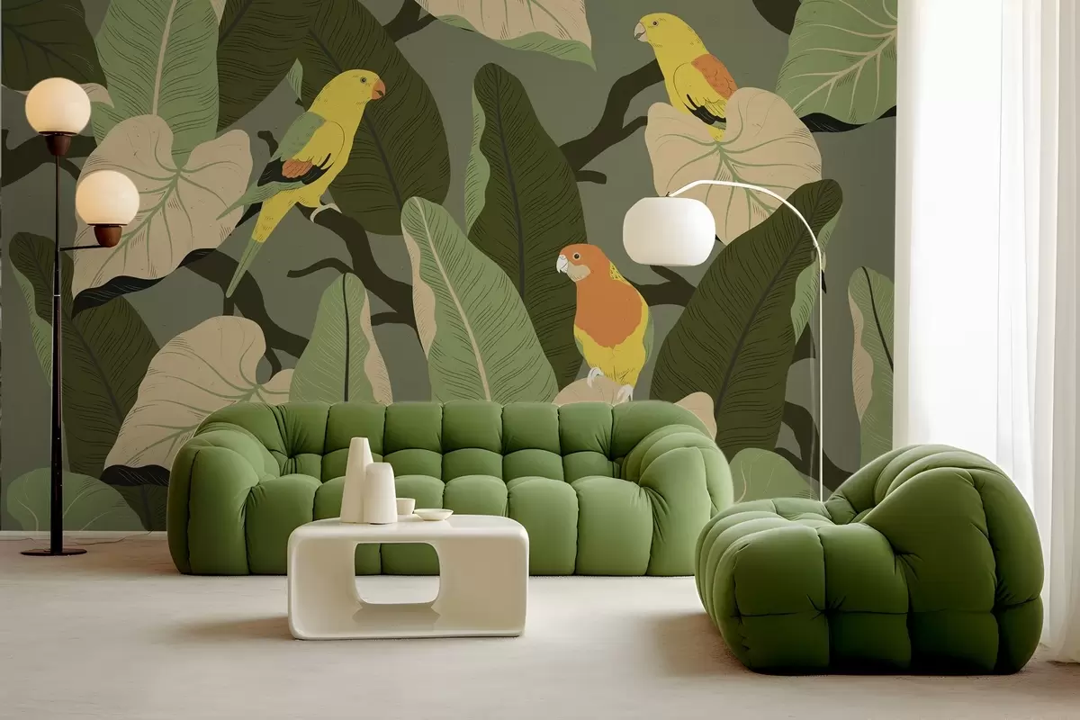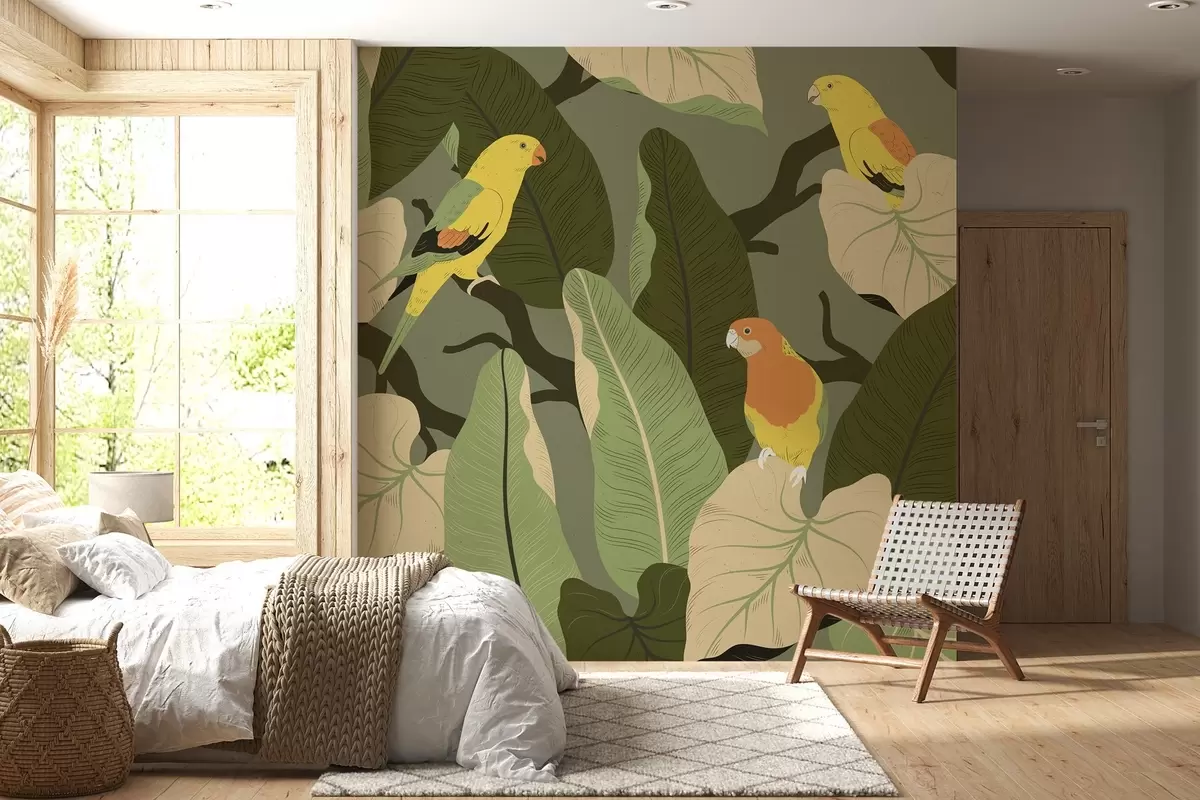 Papel tapiz hojas tropicales con loros Nr. w02402