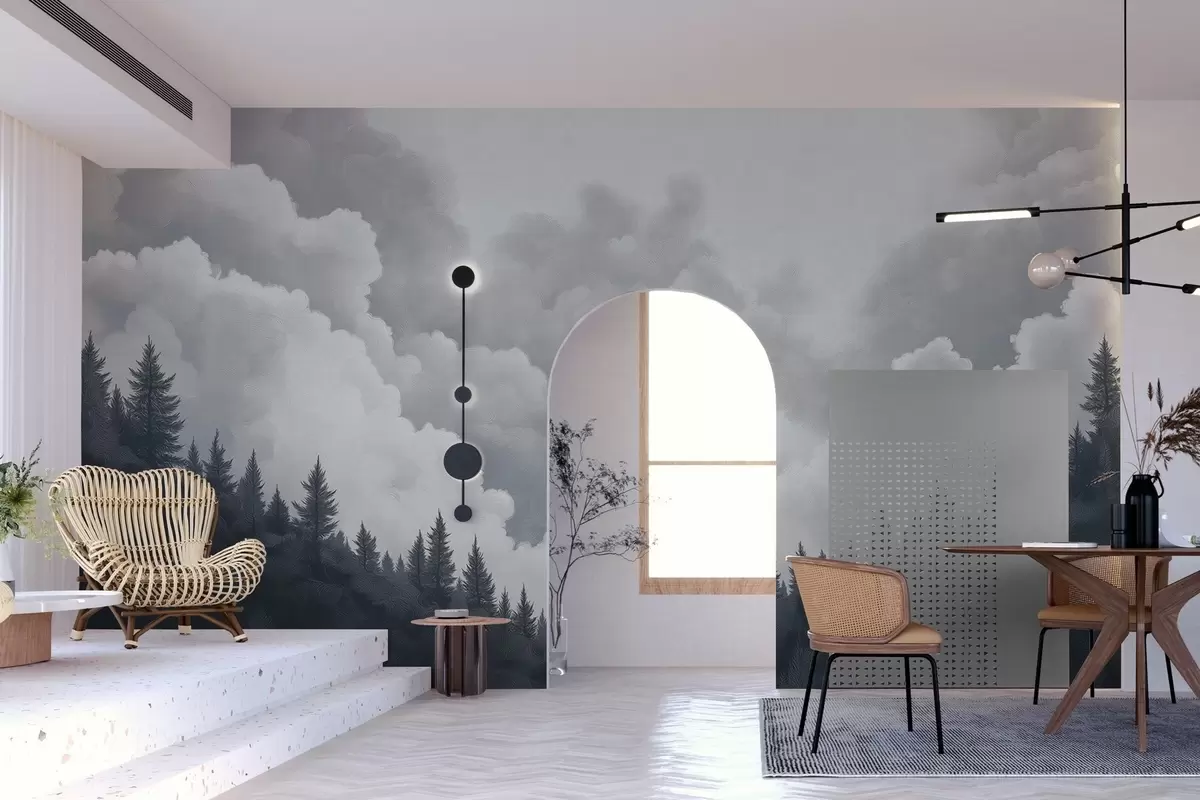 Papel tapiz Nubes espesas pintadas al óleo sobre el bosque Nr. w02411