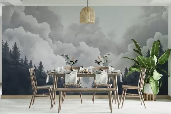Papel tapiz Nubes espesas pintadas al óleo sobre el bosque Nr. w02411