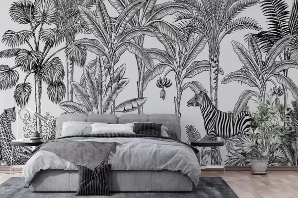 Papel tapiz Sabana con leopardos y cebras Nr. w02419
