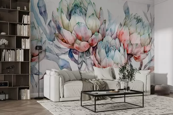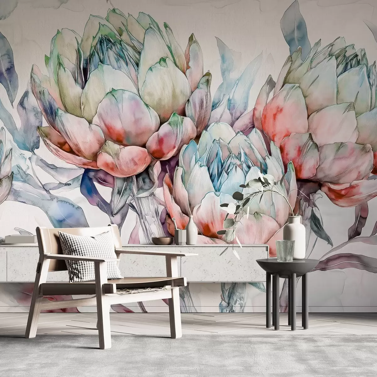 Papel tapiz Alcachofas dibujo, estilo acuarela, floral, rojo, morado, verde Nr. w02484v1