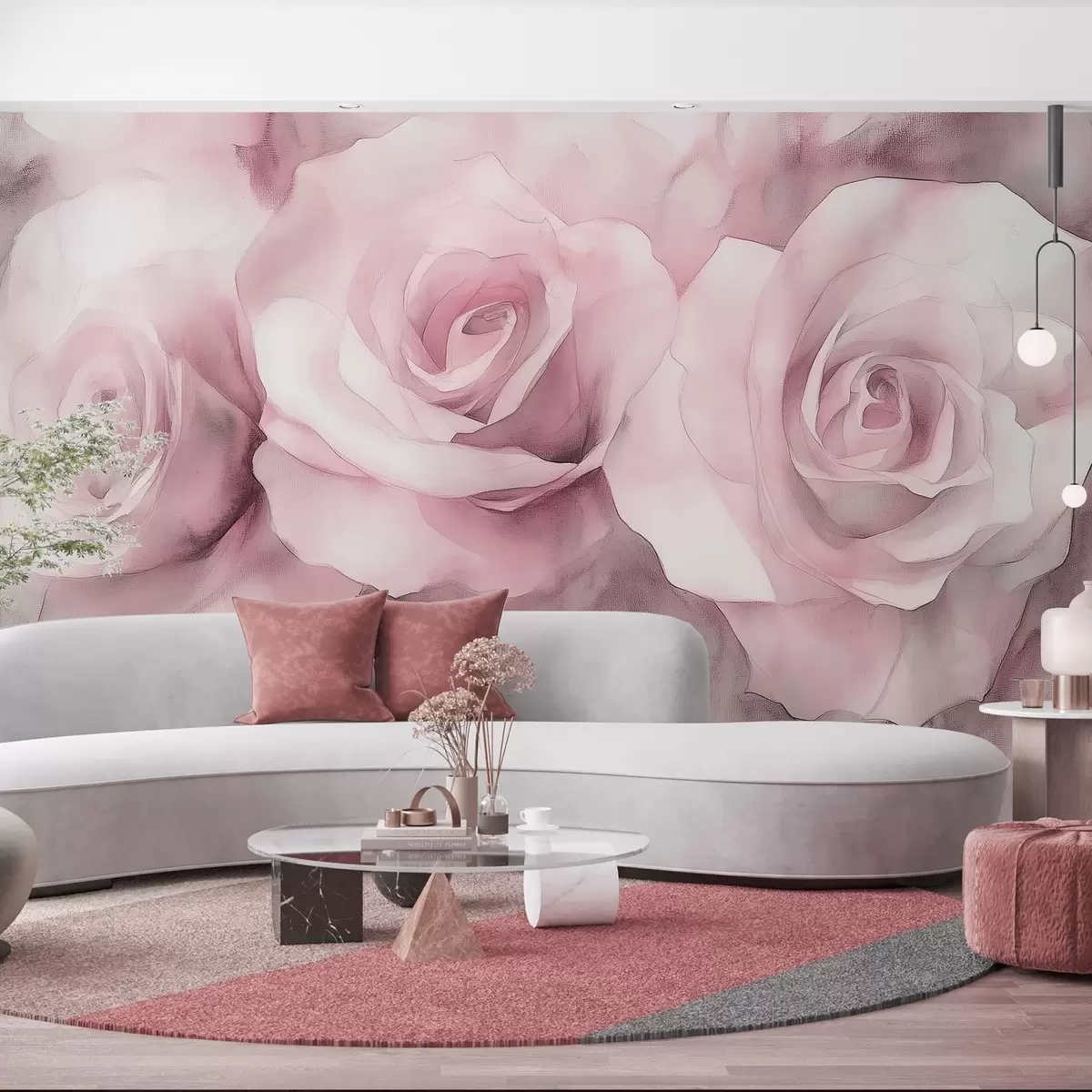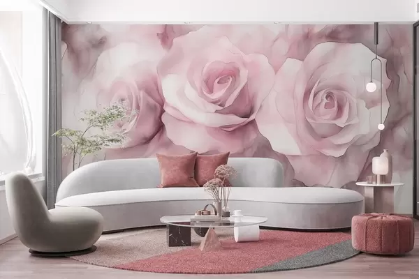 murales de pared Hermosas rosas, estilo acuarela, colores rosas, bohemio w02492v1