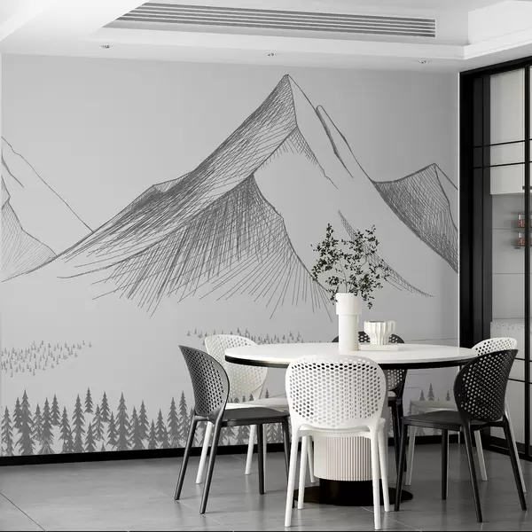 Papel tapiz Montañas y bosque, dibujados a lápiz Nr. w02536