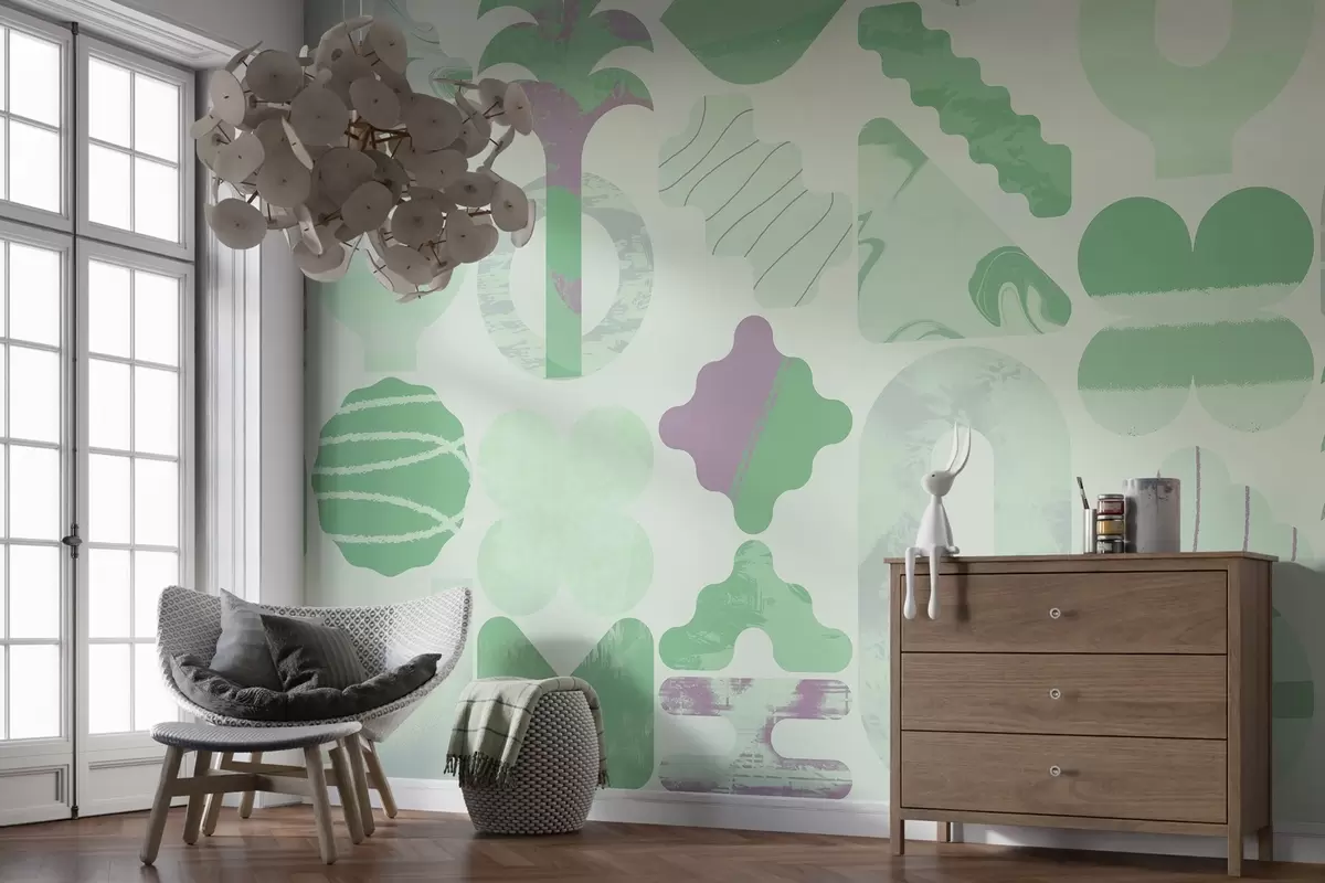 Papel tapiz varias formas interesantes, geometría moderna en colores verdes Nr. w02550v2