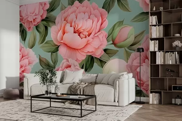 Papel tapiz Peonías rosas con hojas Nr. w02570