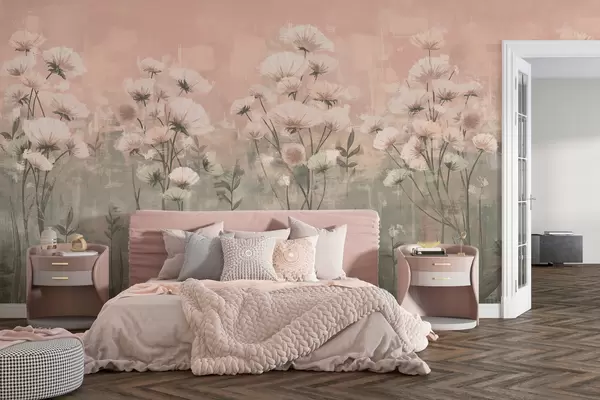 Papel tapiz Delicadas flores silvestres con efecto de pinceladas en rosa Nr. w02629