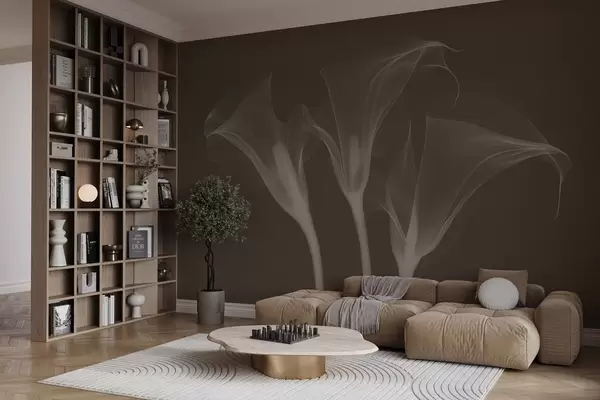Papel tapiz flores de Zantedeschia transparentes sobre fondo oscuro Nr. w02632v1