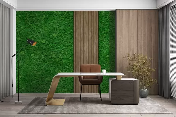murales de pared Pared estilo musgo con panel de madera, exuberantes colores verdes w02656