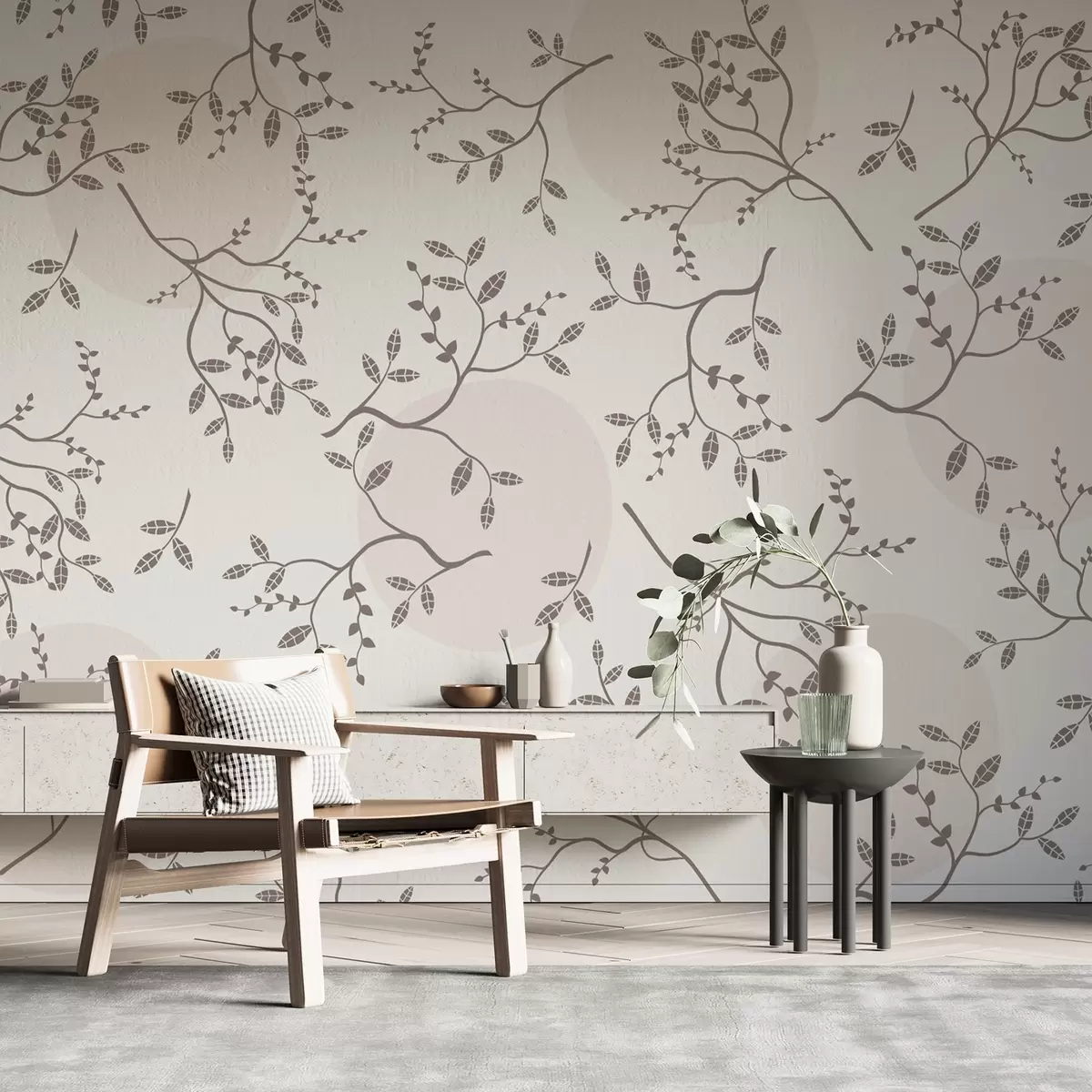 Papel tapiz pequeñas ramas sobre fondo claro Nr. w02670