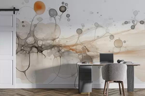 Papel tapiz Abstracción, minimalismo, tinta, colores fluidos, beige y grises Nr. w02750