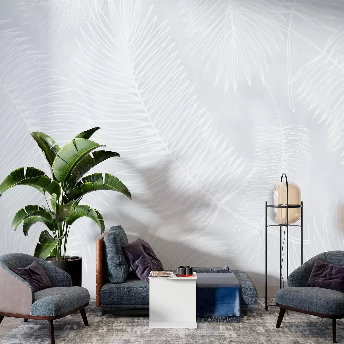 Papel tapiz Siluetas de hojas blancas sobre fondo texturizado Nr. w02894v1