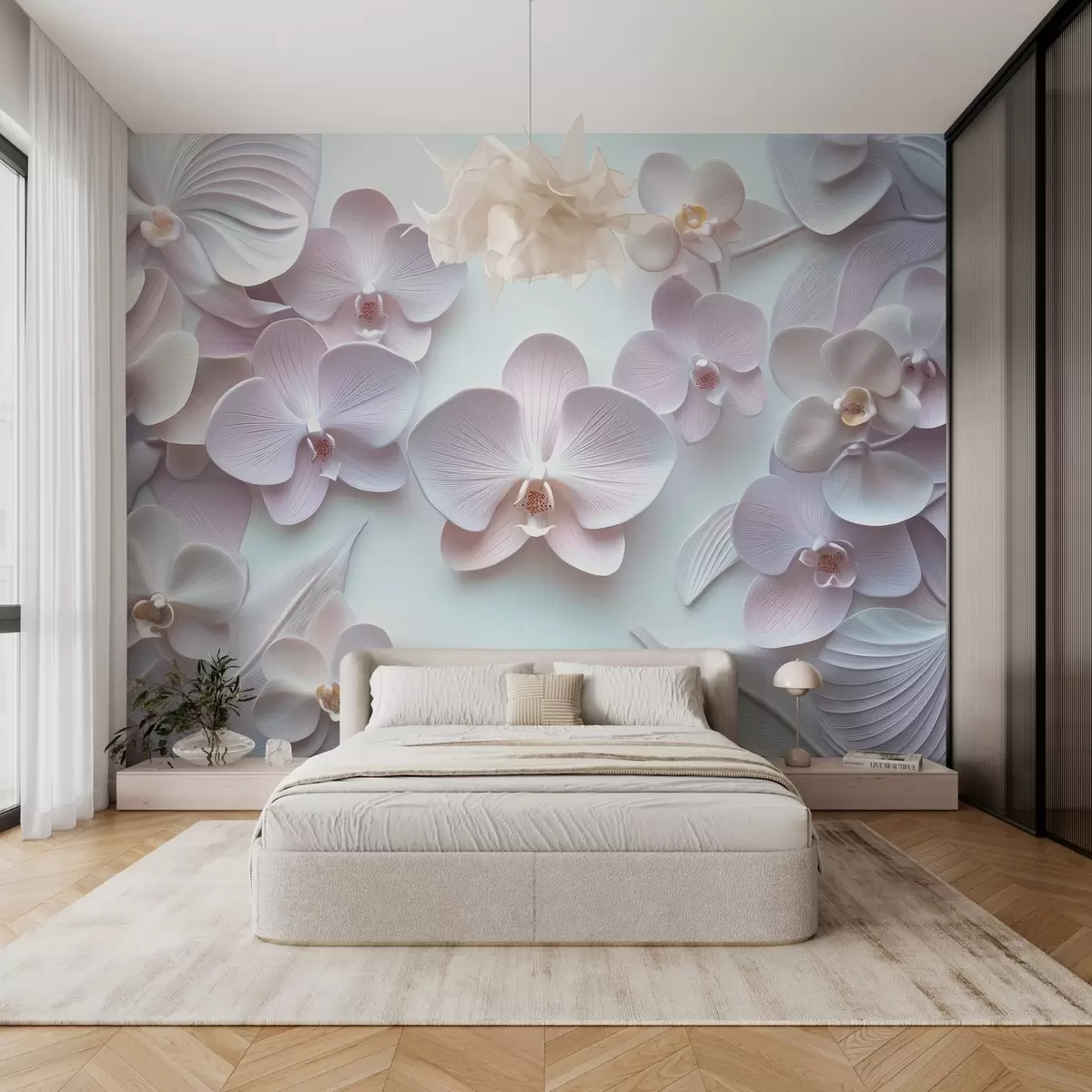 Papel tapiz Delicadas flores de arquidios en colores claros con imitación 3D Nr. w02912