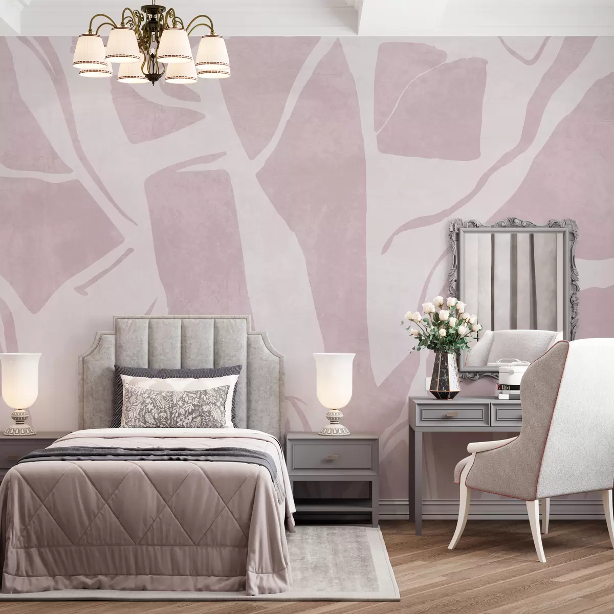murales de pared Papel pintado abstracto geométrico grunge en color rosa w02917v2