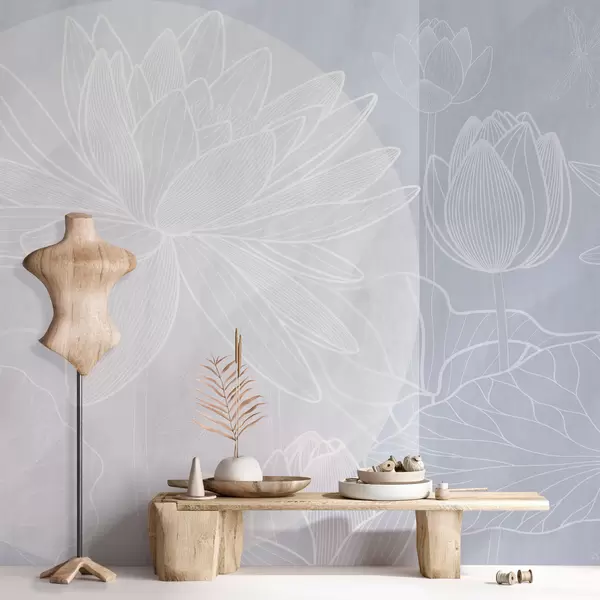 murales de pared Flores de loto y geometría w03005v3