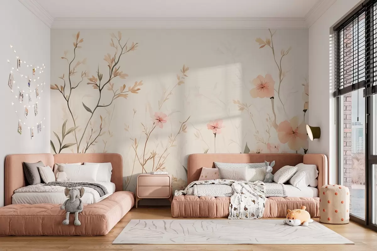 Papel tapiz flores silvestres con flores de melocotón Nr. w03009
