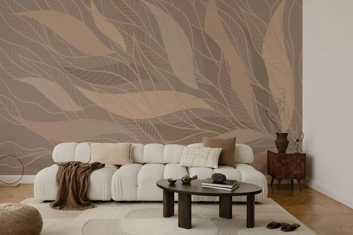 Papel tapiz hojas abstractas en beige y colores cálidos Nr. w03117