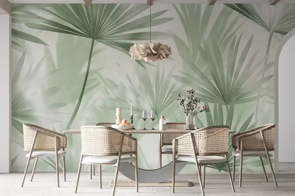murales de pared Hojas de palmera, motivo floral, minimalismo, tropical, colores verdes w03152v2