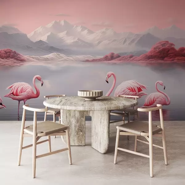 Papel tapiz Acuarela de montañas con flamencos Nr. w03211