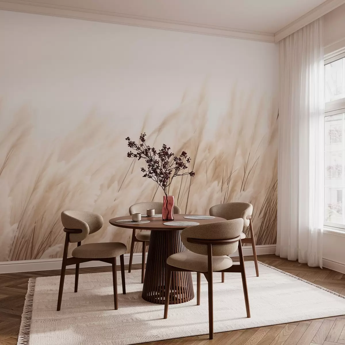 Papel tapiz Espiguillas en colores beige pastel Nr. w03244