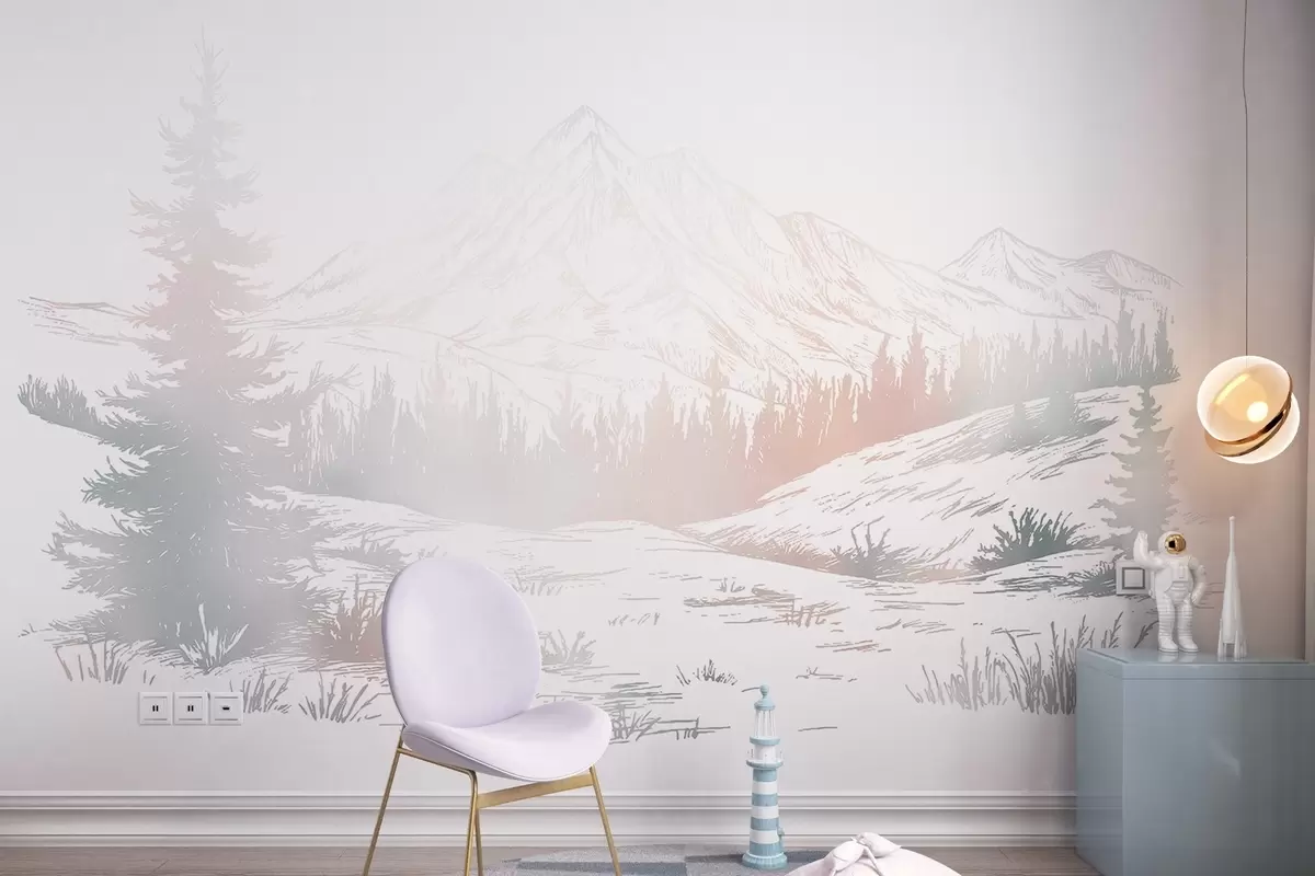 Papel tapiz Paisaje de montaña con pinos, bosque, naturaleza, colorido Nr. w03344v4