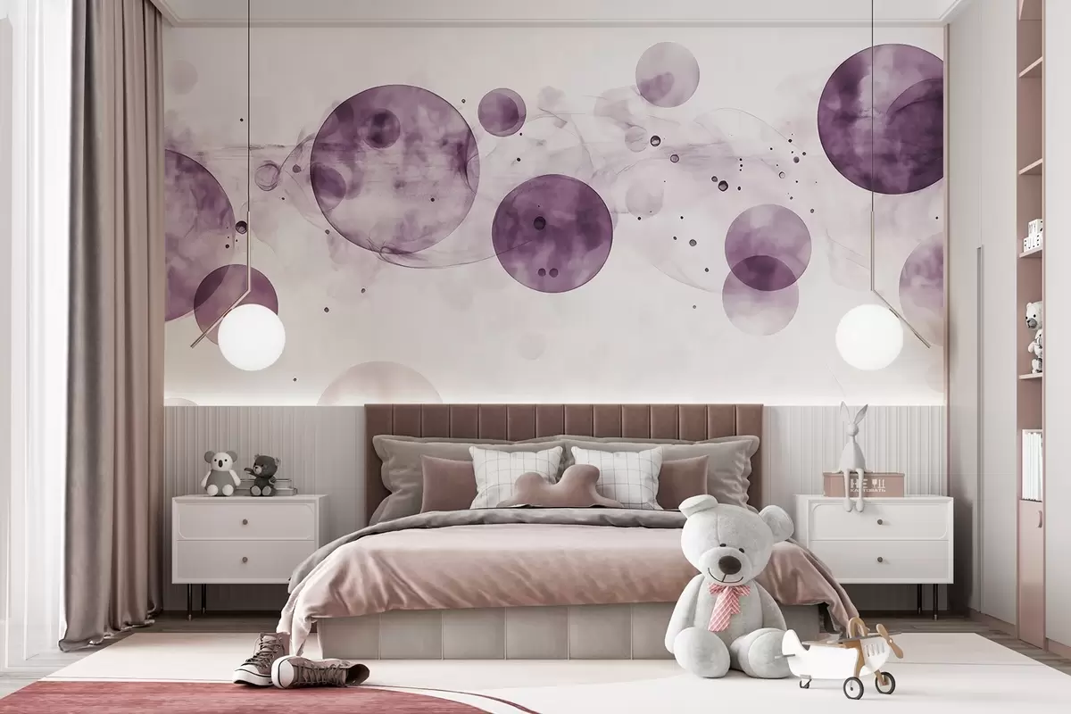 murales de pared Círculos estilo acuarela, abstracción, etéreo, arte fluido, colores morados w03405v2
