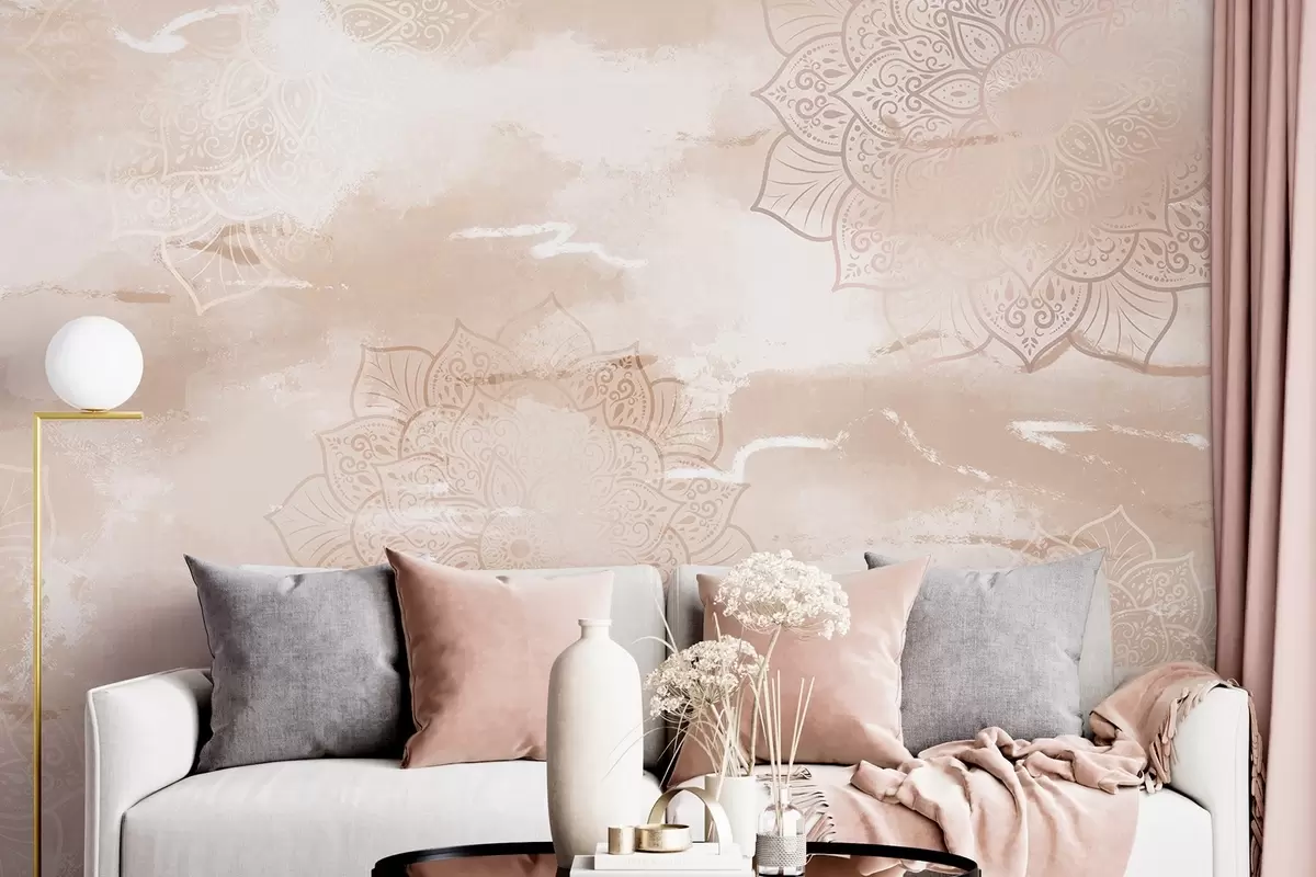 murales de pared Mandalas sobre fondo pastel, pinceladas vivas, colores beige w03409