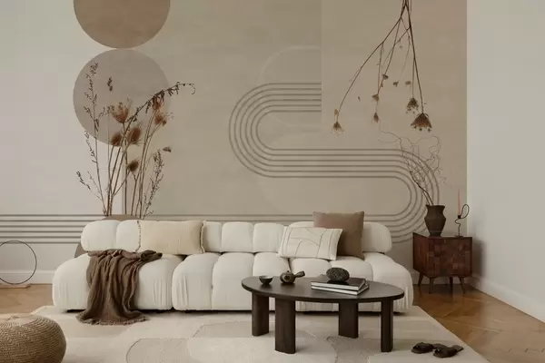 Papel tapiz geometría elegante y flores secas en tonos beige Nr. w03449