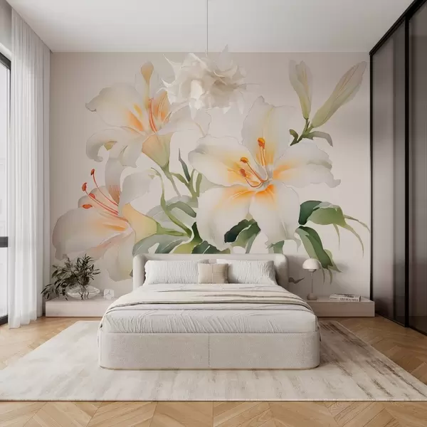 Papel tapiz Lirios blancos imitación acuarela Nr. w03460