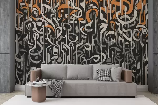 Papel tapiz Diseño de arte callejero con naranja y gris Nr. w03607