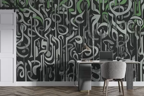 Papel tapiz Diseño de arte callejero en verde y gris Nr. w03607v2