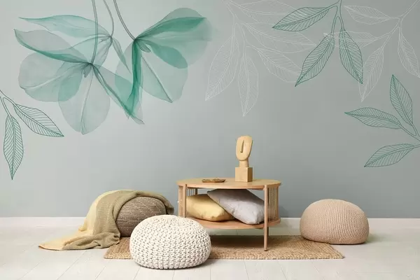 Papel tapiz delicadas flores y hojas translúcidas en tonos verdes Nr. w03616v1