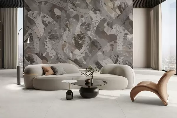 Papel tapiz abstracción bandada de mariposas en tonos grises y marrones Nr. w03725
