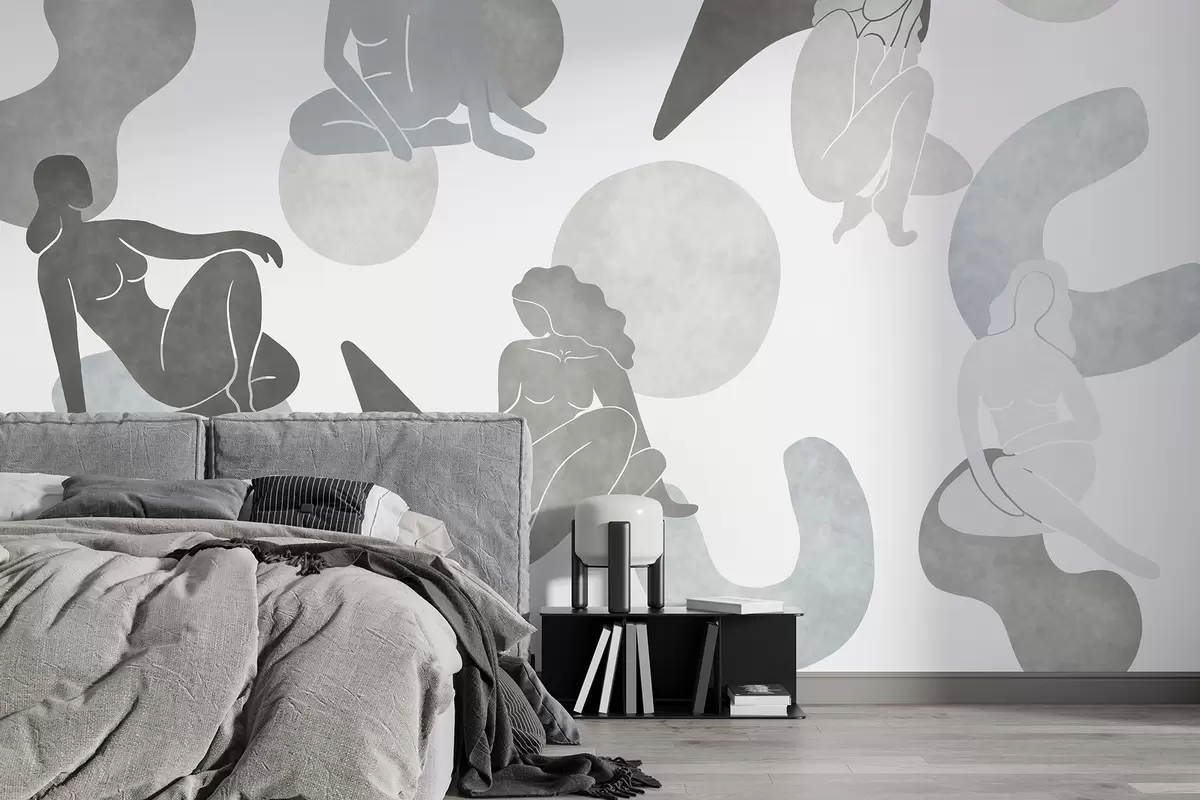 Papel tapiz Abstracciones geométricas con siluetas femeninas, estilo boho, colores grises Nr. w03753v5