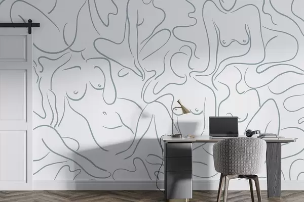 Papel tapiz Dibujo lineal siluetas anatómicas, abstracción, color azul Nr. w03755v1