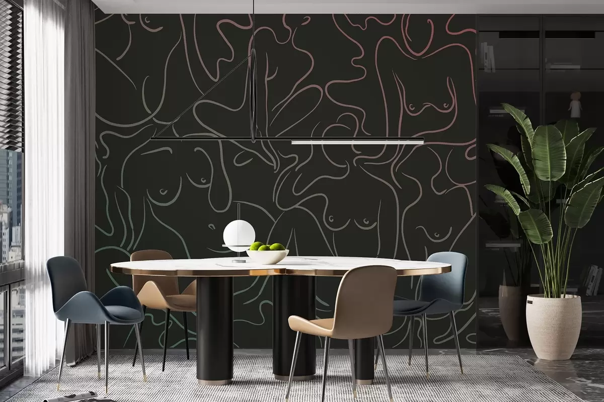 Papel tapiz Dibujo lineal siluetas anatómicas, abstracción, fondo oscuro Nr. w03755v2
