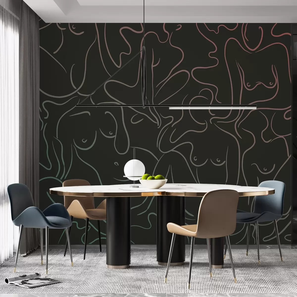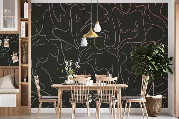 Papel tapiz Dibujo lineal siluetas anatómicas, abstracción, fondo oscuro Nr. w03755v2